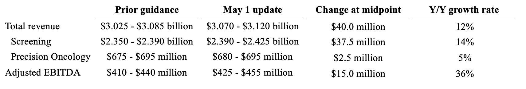 Important factors that could cause actual results, conditions and events to differ materially from those indicated in the forward-looking statements include, among others, the following: our ability to successfully develop and commercialize new products and services and assess potential market opportunities; our ability to successfully and profitably market our products and services; the acceptance of our products and services by patients and healthcare providers; our reliance upon certain suppliers; our ability to retain and hire key personnel; approval and maintenance of adequate reimbursement rates for our products and services within and outside of the U.S.; the amount and nature of competition for our products and services; the effects of any judicial, executive or legislative action affecting us or the healthcare system; changes in government policies, laws, regulations, and staffing; recommendations, guidelines and quality metrics issued by various organizations regarding cancer screening or our products and services; our ability to obtain and maintain regulatory approvals and comply with applicable regulations; our ability to protect and enforce our intellectual property; our success establishing and maintaining collaborative, licensing, and supplier arrangements; the results of our validation studies and clinical trials, including the risks that the results of future studies and trials may differ materially from the results of previously completed studies and trials; our ability to manage an international business and our expectations regarding our international expansion and opportunities; the potential effects of changing macroeconomic conditions and geopolitical conflict; the possibility that the anticipated benefits from our business acquisitions will not be realized in full or at all or may take longer to realize than expected; the outcome of any potential litigation or legal proceeding; and our ability to raise the capital necessary to support our operations or meet our payment obligations under our indebtedness. The risks included above are not exhaustive. Other important risks and uncertainties are described in the Risk Factors sections of our most recent Annual Report on Form 10-K and any subsequent Quarterly Reports on Form 10-Q, and in our other reports filed with the Securities and Exchange Commission. We undertake no obligation to publicly update any forward-looking statement, whether written or oral, that may be made from time to time, whether as a result of new information, future developments or otherwise.