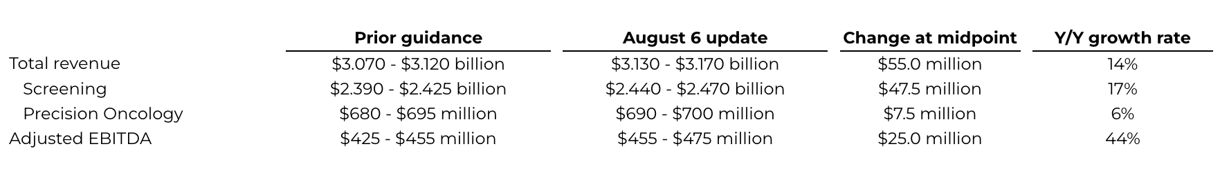 Important factors that could cause actual results, conditions and events to differ materially from those indicated in the forward-looking statements include, among others, the following: our ability to successfully develop and commercialize new products and services and assess potential market opportunities; our ability to successfully and profitably market our products and services; the acceptance of our products and services by patients and healthcare providers; our reliance upon certain suppliers; our ability to retain and hire key personnel; approval and maintenance of adequate reimbursement rates for our products and services within and outside of the U.S.; the amount and nature of competition for our products and services; the effects of any judicial, executive or legislative action affecting us or the healthcare system; changes in government policies, laws, regulations, and staffing; recommendations, guidelines and quality metrics issued by various organizations regarding cancer screening or our products and services; our ability to obtain and maintain regulatory approvals and comply with applicable regulations; our ability to protect and enforce our intellectual property; our success establishing and maintaining collaborative, licensing, and supplier arrangements; the results of our validation studies and clinical trials, including the risks that the results of future studies and trials may differ materially from the results of previously completed studies and trials; our ability to manage an international business and our expectations regarding our international expansion and opportunities; the potential effects of changing macroeconomic conditions and geopolitical conflict; the possibility that the anticipated benefits from our business acquisitions or collaborative or licensing arrangements will not be realized in full or at all or may take longer to realize than expected; the possibility that the anticipated benefits from our restructuring and cost reduction initiatives will not be realized in full or at all or may take longer to realize than expected; the outcome of any potential litigation or legal proceeding; and our ability to raise the capital necessary to support our operations or meet our payment obligations under our indebtedness. The risks included above are not exhaustive. Other important risks and uncertainties are described in the Risk Factors sections of our most recent Annual Report on Form 10-K and any subsequent Quarterly Reports on Form 10-Q, and in our other reports filed with the Securities and Exchange Commission. We undertake no obligation to publicly update any forward-looking statement, whether written or oral, that may be made from time to time, whether as a result of new information, future developments or otherwise.